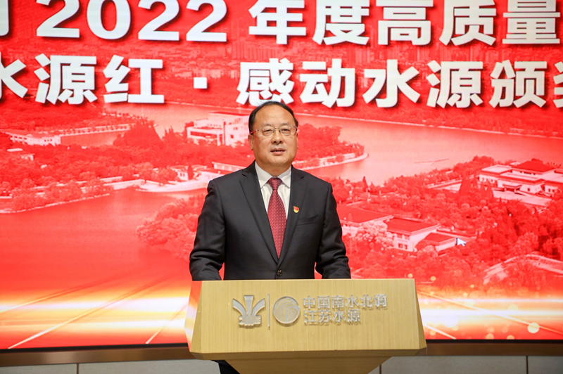 公司党委副书记、总经理袁连冲宣读《乐玩·体育江苏水源公司党委关于2022年度综合考核结果的通知》《乐玩·体育江苏水源公司党委关于表彰2022年度“水源红·感动水源”先进典型及重大项目奖和专项奖的决定》。