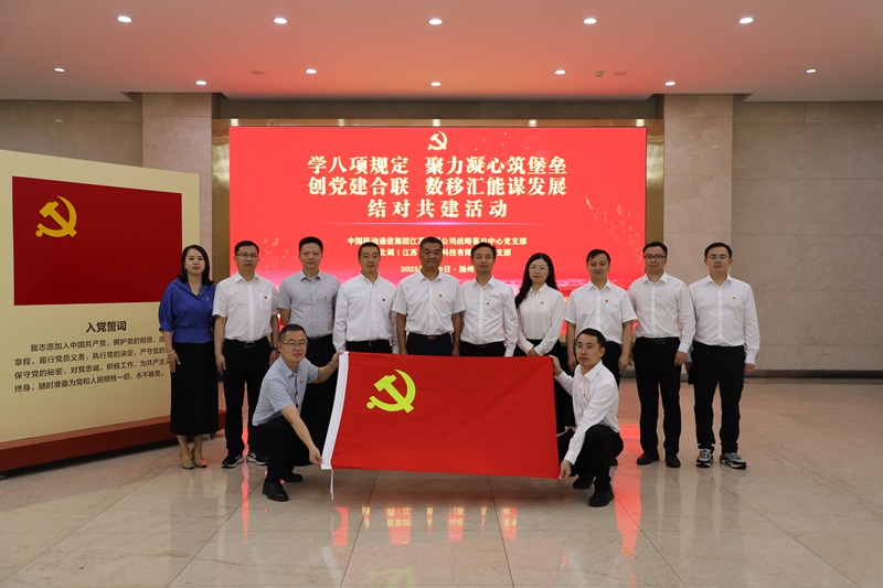 为持续深化战略合作,推动党建业务双融双促,6月9日,数智科技公司党支部与江苏移动战略客户中心党支部联合开展支部共建主题党日活动,旨在以高质量联学共建,促进双方资源共享、技术交流协作,赋能“智改数转网联”产业转型升级,双方党员代表参加活动。