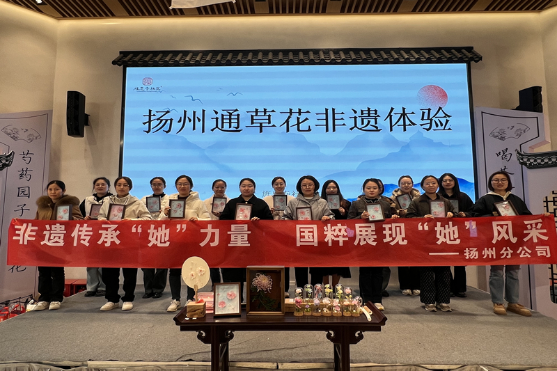 为庆祝第115个“三八”国际劳动妇女节,丰富女职工精神文化生活,感受中华优秀传统文化的魅力,扬州分公司组织开展“非遗传承‘她’力量 国粹展现‘她’风采”通草花手作体验活动,分公司共25名女职工积极参与,在指尖感受非遗之美,共度美好节日。