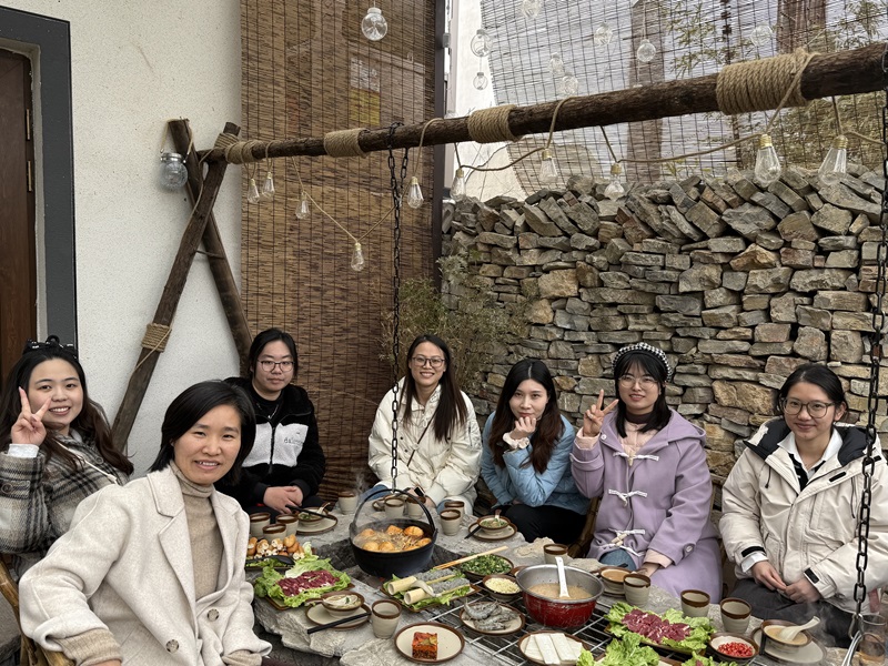 一方茶炉、几缕炭火、数盏清茶,活动现场以传统围炉煮茶为形式,营造出古朴雅致的氛围。红泥小火炉上,陶罐中的老白茶缓缓沸腾,茶香与桂圆、红枣的甘甜交织升腾;烤盘上,棉花糖、年糕在炭火的炙烤下滋滋作响,暖意驱散了初春的微寒。女职工们围坐炉边,品茗谈笑,从工作心得聊到家庭趣事,从职业规划谈到生活感悟。工管部的侯程程感慨道:“平日忙于项目,难得有机会和大家这样放松交流。热茶入喉,心里也跟着暖了起来。”