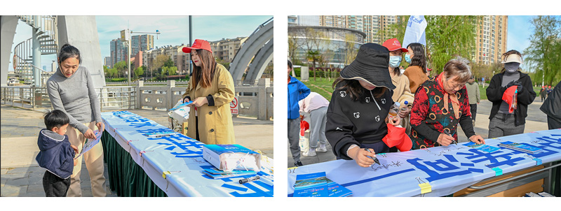 活动中,大家在党旗、团旗、公司旗、青年志愿者服务队旗的带领下,从石头城公园出发,沿着秦淮河沿岸向三汊河广场进发,沿途开展节水护水宣传。在中途补给点,由青年员工和全国节水吉祥物霖霖人偶一起组织开展有奖答题活动,大家参与热情非常高,“乐玩·体育三个事关”内容是什么?”“我知道我知道,乐玩·体育工程事关战略全局、事关长远发展、事关人民福祉”,每道题目都难不倒江苏水源公司的干部职工们。在终点站三汊河广场,大家在“强化依法治水 携手共护母亲河——水源红节水护水主题宣传活动”横幅开展联合签名活动,并向市民发放了节水宣传手袋和节水宣传册。