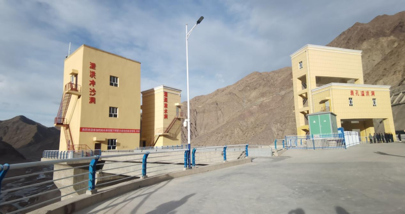 项目概况:托帕水库工程位于乌恰县巴音库鲁提乡境内,距阿图什市92千米,坝址中线位于省道S212里程桩号79+600处。水库多年平均径流量1.653亿m³,多年平均流量5.24 m³/s,控制流域面积3009k㎡,水库正常蓄水位2394.50米,总库容6098.93万m³。工程由挡水坝和泄水建筑物组成,挡水坝为沥青混凝土心墙土石坝,坝顶高程2397.5米,坝顶宽8米,最大坝高61.5米,坝长431.42米。坝基基础防渗设计采用混凝土防渗墙与帷幕灌浆相结合的方案,防渗墙最大深度110.6米。泄水建筑物由溢洪洞、泄洪冲沙洞(兼导流洞)和灌溉放水洞组成。2018年2月,自治区发改委批复工程初步设计报告。工程批复概算10.98亿元,批复总工期为39个月。