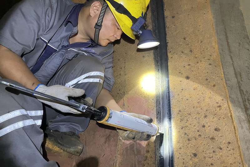 在安全得到充足保障后,团队对承插缝处理及密封圈进行安装,运用专业工具对插缝精心清理、细致打磨完成清理后,凭借丰富经验与精湛技巧,在狭窄且操作不便的空间环境下,精准地将密封圈缓缓置入承插缝。安装时,严格遵循均匀受力原则,使用小锤轻柔且有节奏地敲击,使密封圈逐步嵌入并贴合承插缝内壁。每一次敲击力度与角度都经过精心把控,确保密封圈在整个圆周上均匀分布,无任何局部偏移或挤压不实的情况。在初步安装完成后,进一步采用专用量具对密封圈的安装位置与密封效果进行全面复核检查,通过精确测量与细致比对,确认密封圈已紧密、准确地安装到位,完全符合技术标准与抢修作业要求,为整体抢修工程的质量与安全提供坚实保障。