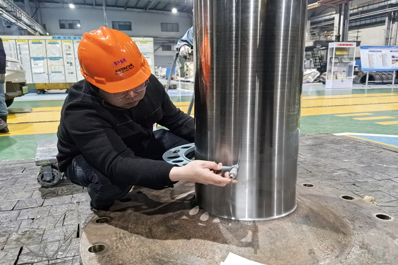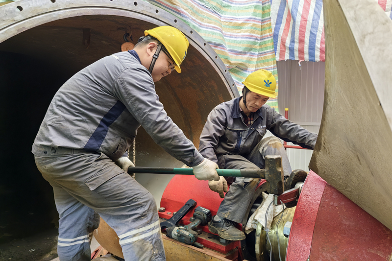 面对现场艰苦的施工环境,突击队把好精品关、严格关,顶着寒风在厂房外为部件修补出新,全力保障施工现场安全、维护项目形象。为实现施工安全和作业强度的双重保障,严格执行定时轮换作业模式,在叶轮头与短轴连接螺栓的拆除和安装过程中,因连接处空间有限,无法使用扭矩扳手,三名成员通力协作,两人一组,1小时内累计挥动12磅大锤240余次,高效完成连接螺栓的拆除和安装。在连续高强度作业下,最终累计完成近200颗的壳体螺栓拆卸、12件大型部件的拆解和吊出、上百道工序。此外,在叶调装置改造基础上,突击队主动对接现场管理单位,在保障、缩短项目工期的基础上,额外开展全套机组常规维修工作,将叶调改造升级为系统性提质工程。