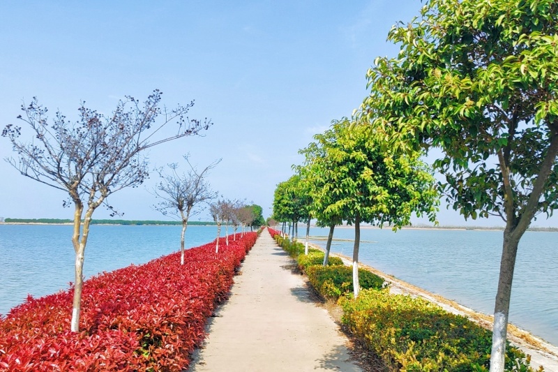 金宝航道上晴空高远爽朗,绿树夹岸而立,春水延绵向远方,光阴与浅草渐生,为金宝航道绘上满满春色,增添勃勃生机。