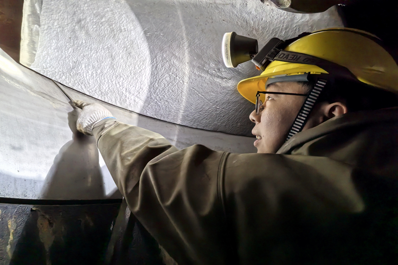 由于检修平台直面长江主航道,日均扬尘浓度150μg/m³,超标环境叠加最大瞬时风力达7级的恶劣气候,为顺利作业带来挑战。为保障人员安全,维检团队以科技赋能,加强安全管控,通过引入KN100级专业防尘面罩,顺利构建呼吸防线;针对25米高空易坠落部位,创新采用“人工监控+磁吸式防护网+醒目安全标语”组合装置,防止高空作业危险;在10吨级转子体吊装中采用“双重锁定”系统——机械锁具物理固定、人工瞭望实时预警,最终实现关键工序毫米级精准就位。期间共累计开展防坠落、抗风灾等专项演练3场次,以“零事故”战绩交出安全答卷。