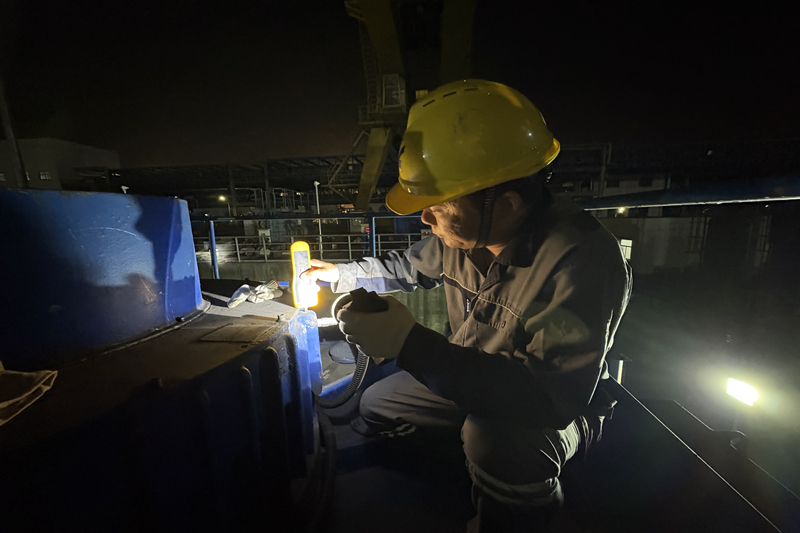 “江风裹挟着沙砾,直往领口里面钻,安全帽要是不系紧带子,都能被大风直接掀飞。”现场负责人说道。为了能够在规定工期前顺利完工,维检团队开启了“白+黑”双班制,为顺利完成机组固定部件同心测量调整、叶片间隙测量调整等关键工作,安排3名工作人员在20米深、漆黑一片的流道底部,连续作业长达3小时,最终圆满完成了机组各部件的调整任务。此次检修共拆除锈蚀螺栓280颗,修复密封面18处,设备试运行一次性成功,较合同工期提前240小时交付。