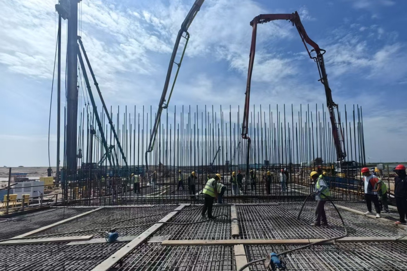 淮河入海水道二期海口枢纽工程首块闸室底板混凝土浇筑圆满完成