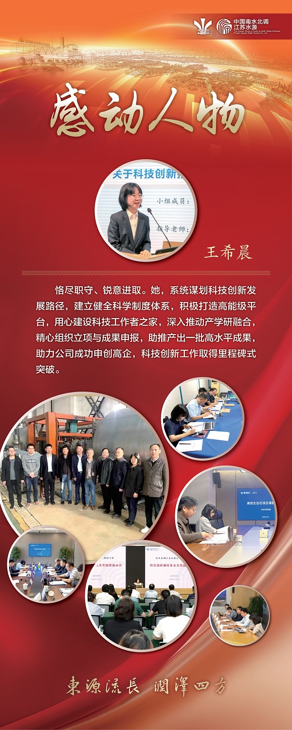 王希晨以平台建设为抓手,汇聚整合各方资源,深化产学研合作,成功申报“江苏省调水数智工程研究中心”,为公司再添省级科创平台。她牵头公司科学技术协会筹建工作,从章程制定到大会筹备,事无巨细、亲力亲为,推动公司成为省属企业中首个成立科协单位。她积极推进内外科技交流、分享技术资源、开展专题宣讲,为员工开展科研类奖项、人才、成果等申报提供悉心指导,努力营造开放共享的创新氛围,为公司培育了良好的创新生态。